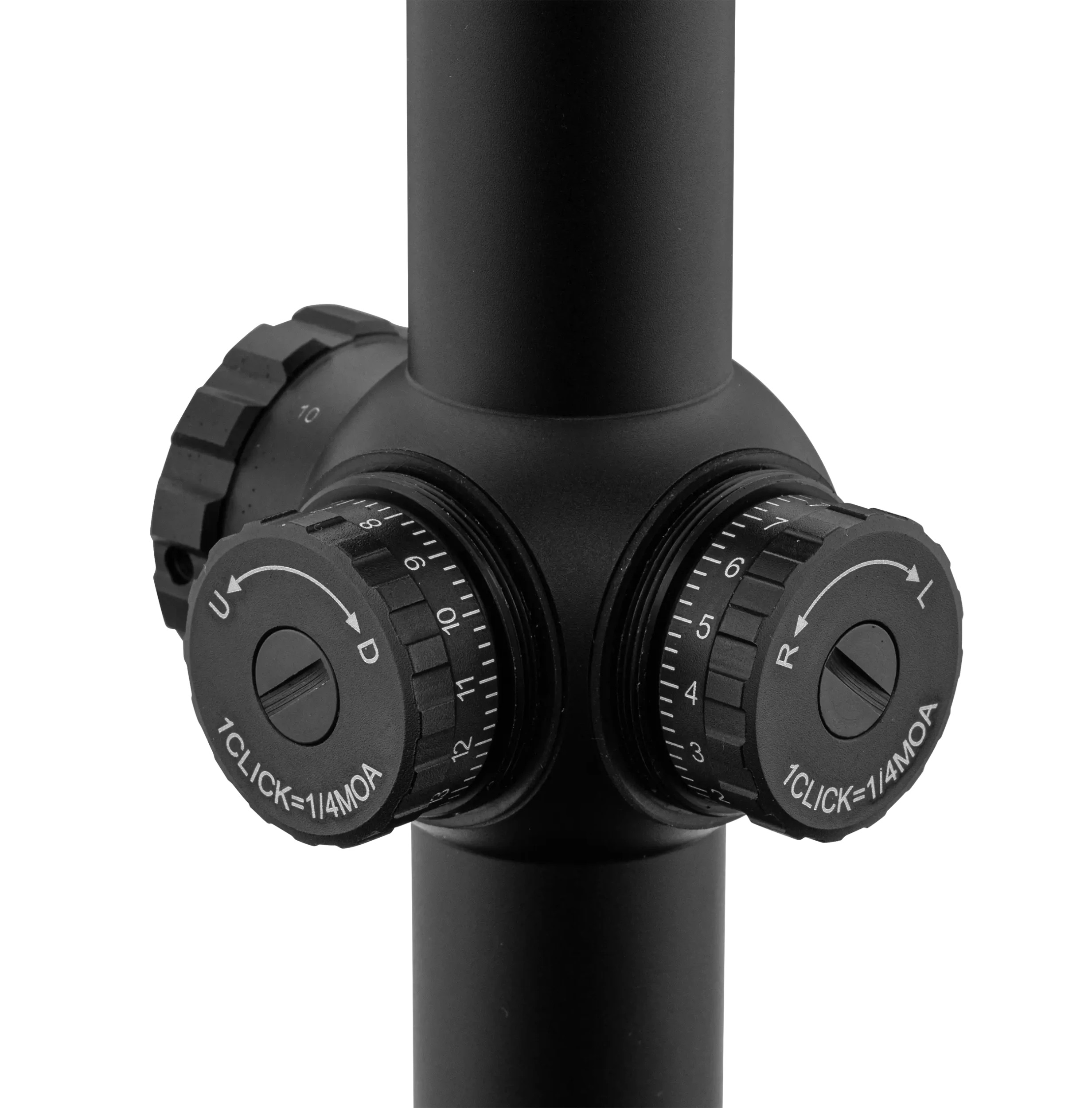 The Mil-Dot reticle makes it easy to estimate distances and calculate fire correction. Manual windage and elevation adjustment turrets provide quick and precise adjustment in the field.