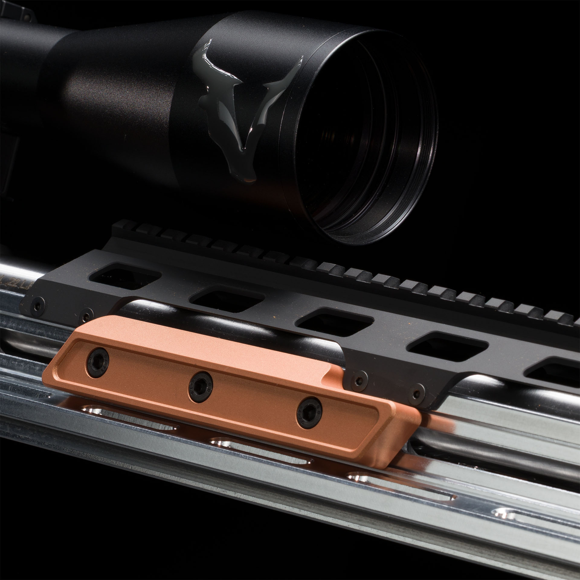 Le garde-main intègre des rails Anschutz et Arca sur toute sa longueur, permettant d'installer facilement bipied, trépied ou accessoires. Le rail Picatinny 20 MOA offre une réserve d'élévation idéale pour exploiter pleinement les optiques, même sur des distances étendues en .22 LR.