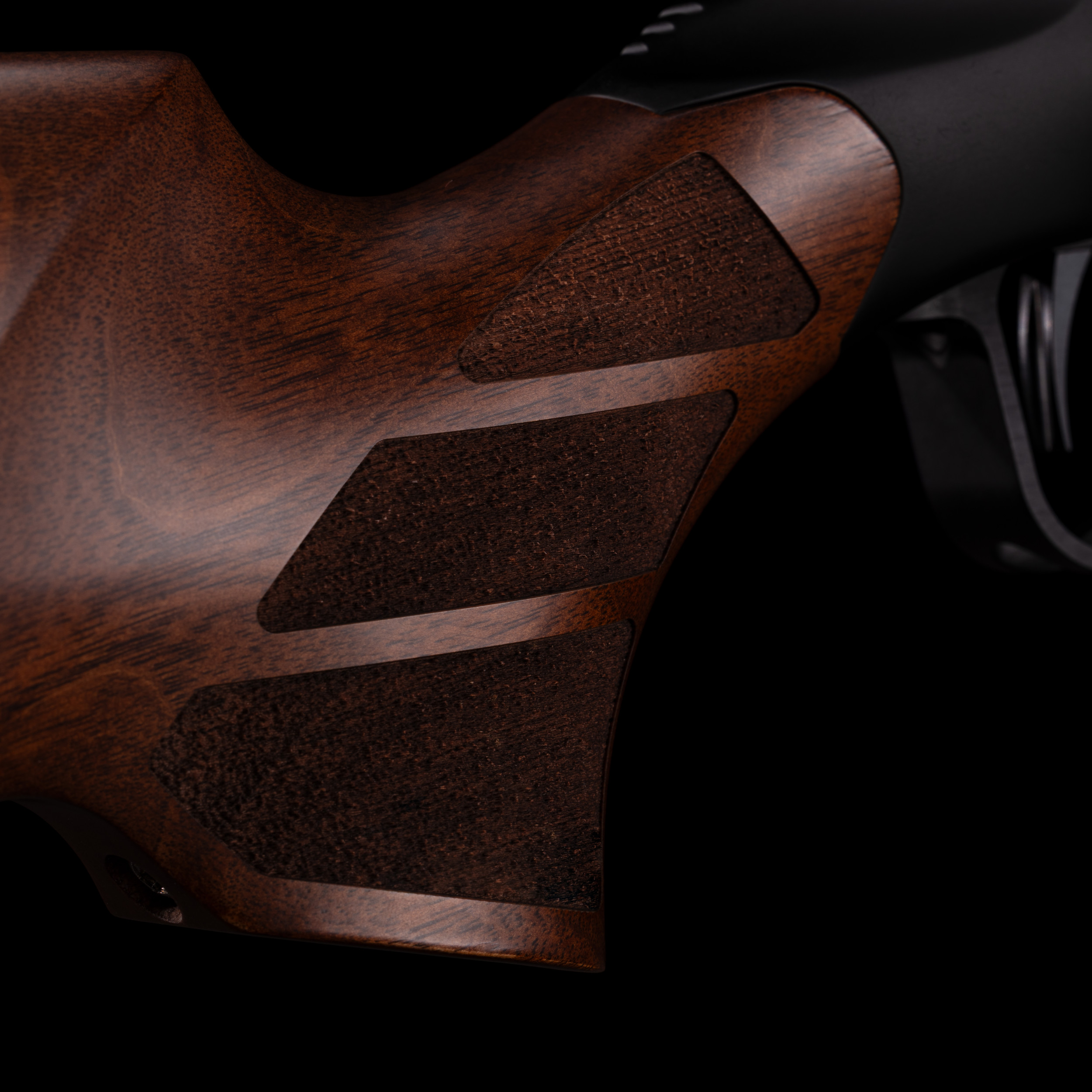 L'action courte usinée dans la masse assure robustesse et longévité. Le verrou à trois tenons asymétriques garantit un verrouillage sûr et fluide. La détente Victrix Sporting Plus, réglée autour de 400 g, offre un départ net et constant, parfaitement adapté au tir de précision.